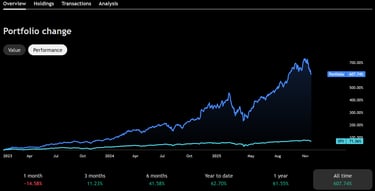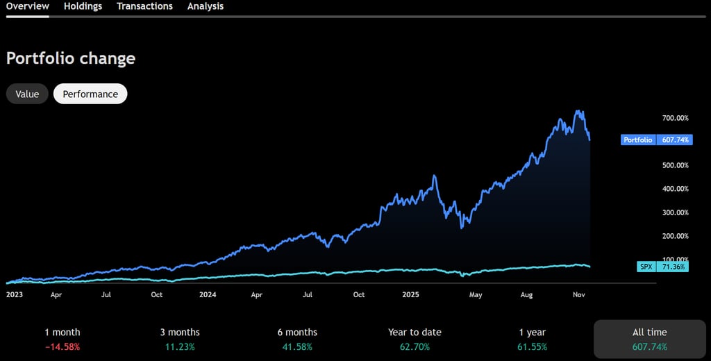 All performance shown is based on a TradingView model portfolio and does not represent an actual client account. Past performance is not a guarantee of future results. Market conditions can change, and future returns may differ significantly from historical outcomes.